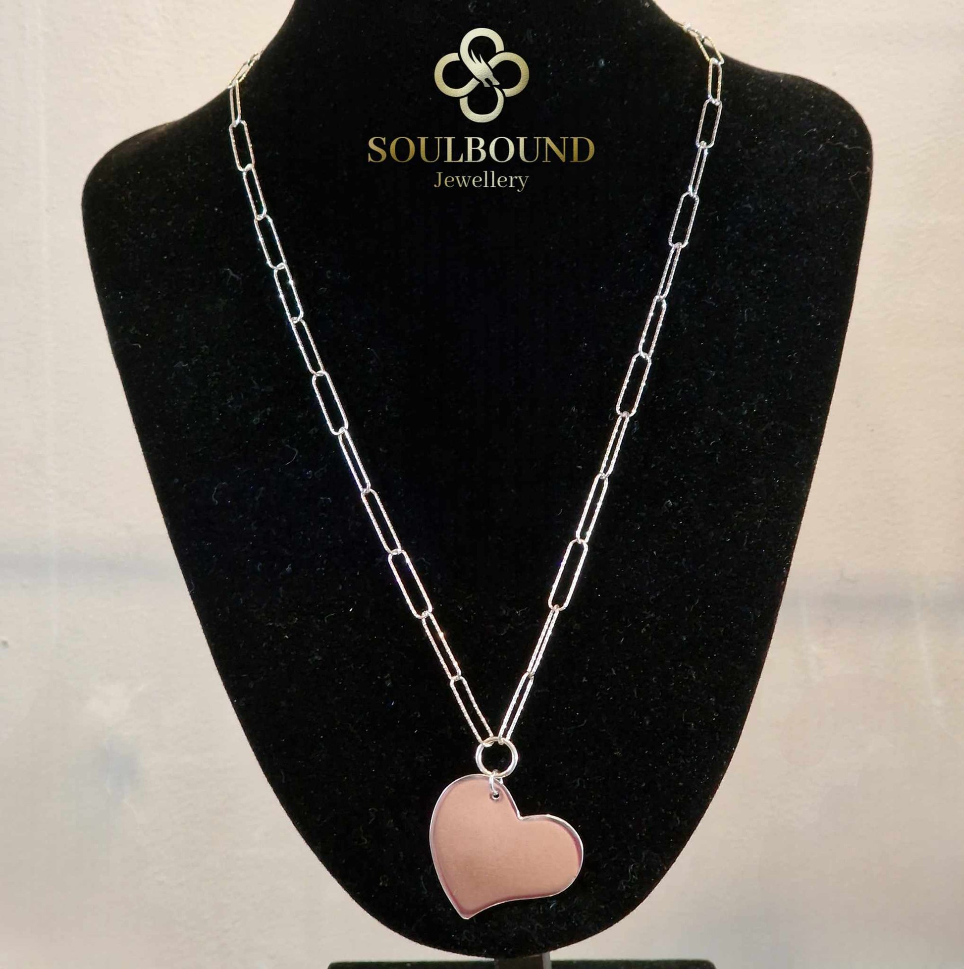 Hand crafted from elegant sterling silver, this heart pendant necklace is the perfect addition to any outfit. The delicate 48cm sparkle paperclip chain adds a touch of sparkle while the handmade design adds a unique touch. Elevate your style and express your individuality with this stunning piece of jewellery.